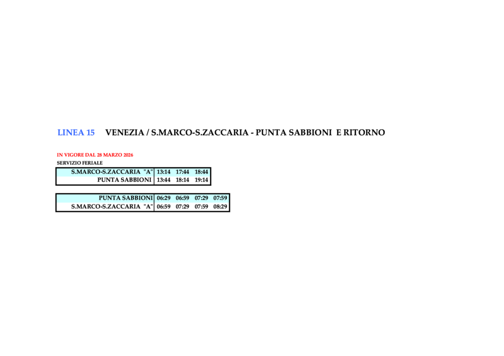 - 3.18 Linie 15 – VENEZIA / S.ZACCARIA – PUNTA SABBIONI