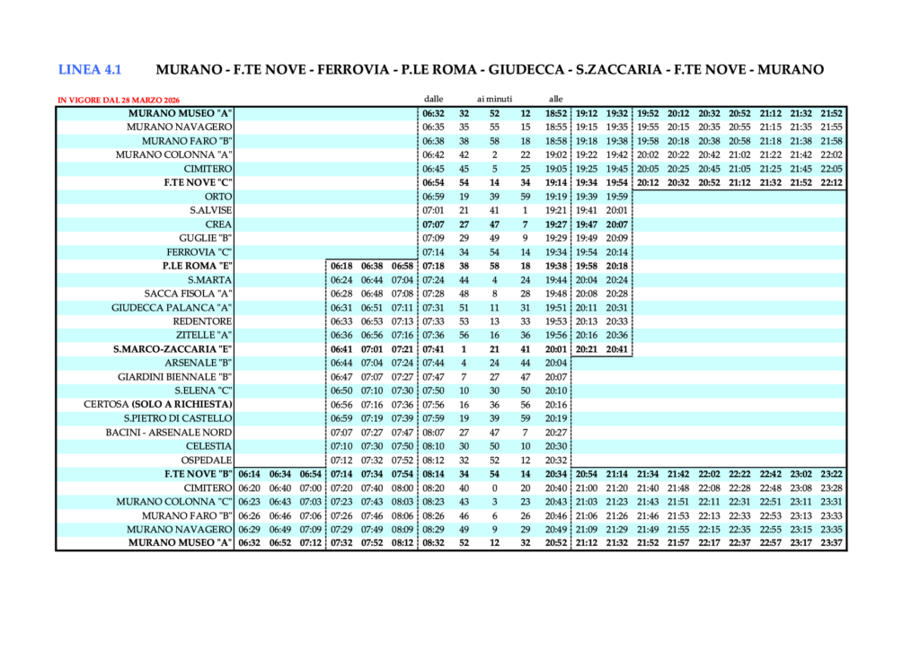 - 3.5 Linie 4.1 – MURANO – F.TE NOVE – FERROVIA – P.LE ROMA – GIUDECCA – S.ZACCARIA – F.TE NOVE – MURANO