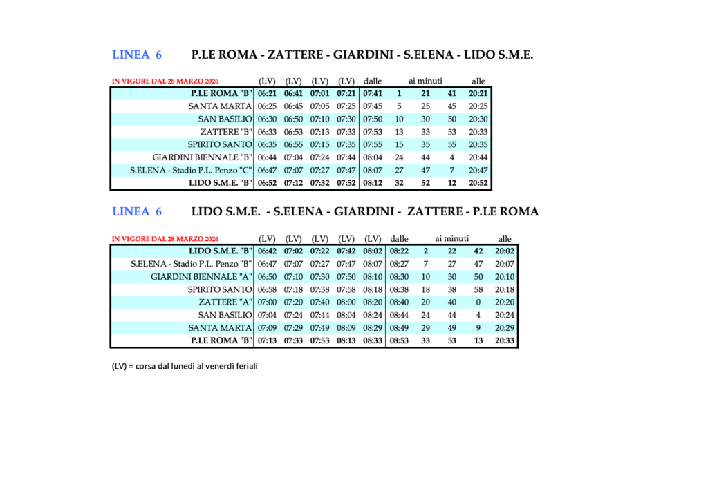 - 3.8 Linie 5.2 – LIDO S.M.E. – S.MARCO/S.ZACCARIA – P.LE ROMA – FERROVIA – FONDAMENTE NOVE – OSPEDALE – LIDO S.M.E.