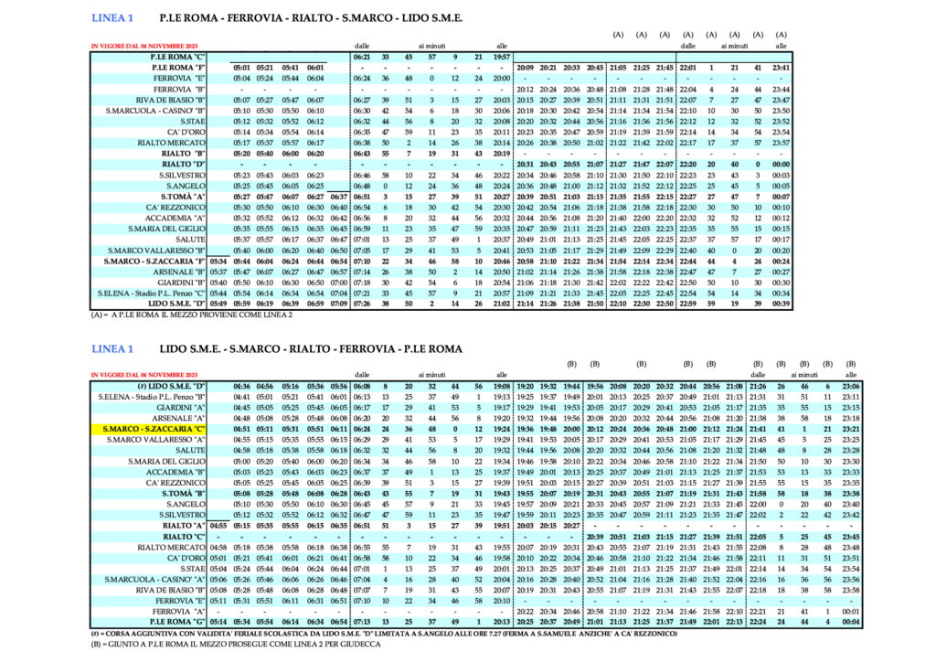 - 3.1 Linie 1 – PIAZZALE ROMA – FERROVIA – RIALTO – S.MARCO – LIDO S.M.E. und umgekehrt