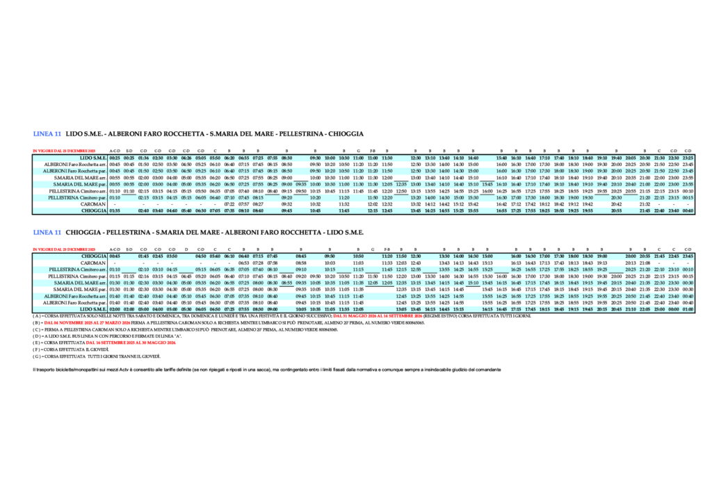 - 3.14 Linie 11 – LIDO S.M.E. – ALBERONI FARO ROCCHETTA – S.MARIA DEL MARE – PELLESTRINA – CHIOGGIA und zurück