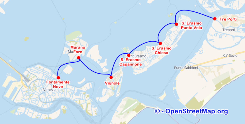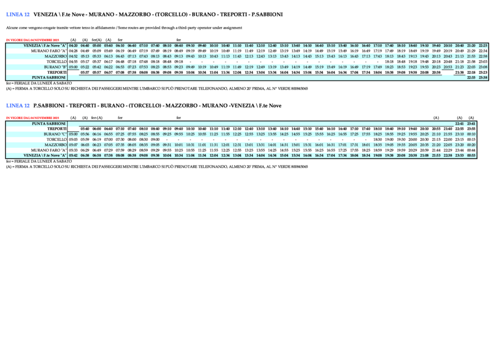 - 3.15 Linie 12 – VENEZIA/F.TE NOVE – MURANO – MAZZORBO – (TORCELLO) – BURANO – TREPORTI – PUNTA SABBIONI und zurück