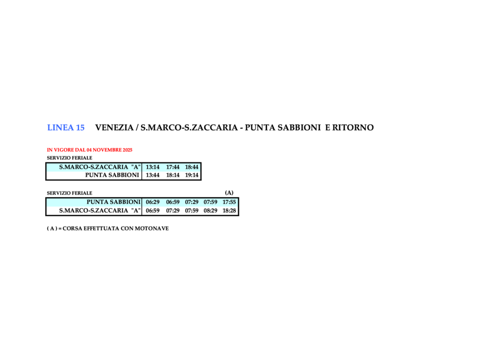 - 3.18 Linie 15 – VENEZIA / S.ZACCARIA – PUNTA SABBIONI