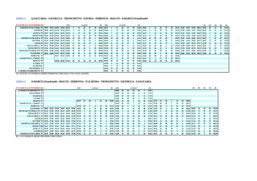 Fahrplan ACTV Venedig Linie 2/ – Stand 18.01.2026