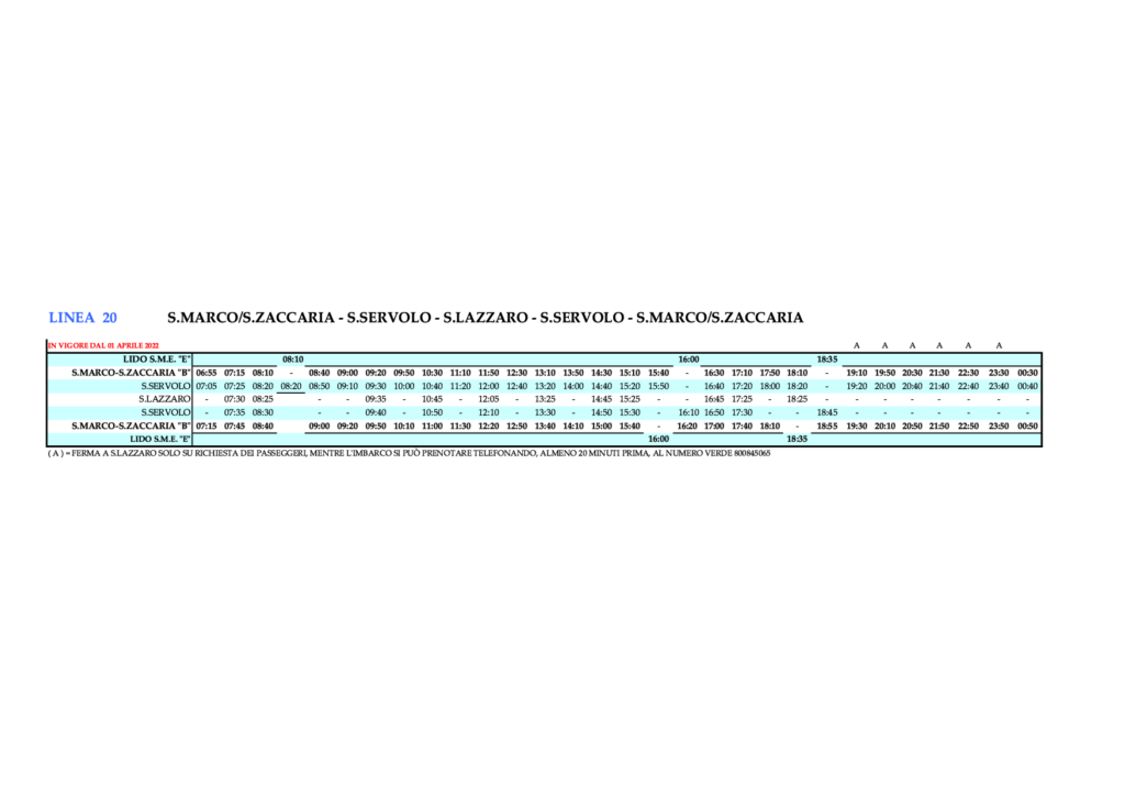 - 3.21 Linie 20 – S.MARCO/S.ZACCARIA – S.SERVOLO – S.LAZZARO – S.SERVOLO – S.MARCO/S.ZACCARIA