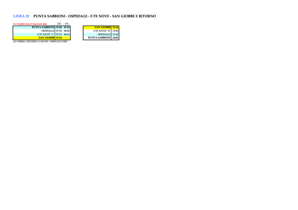 - 3.22 Linie 22 – PUNTA SABBIONI – OSPEDALE – F.TE NOVE – TRE ARCHI und zurück