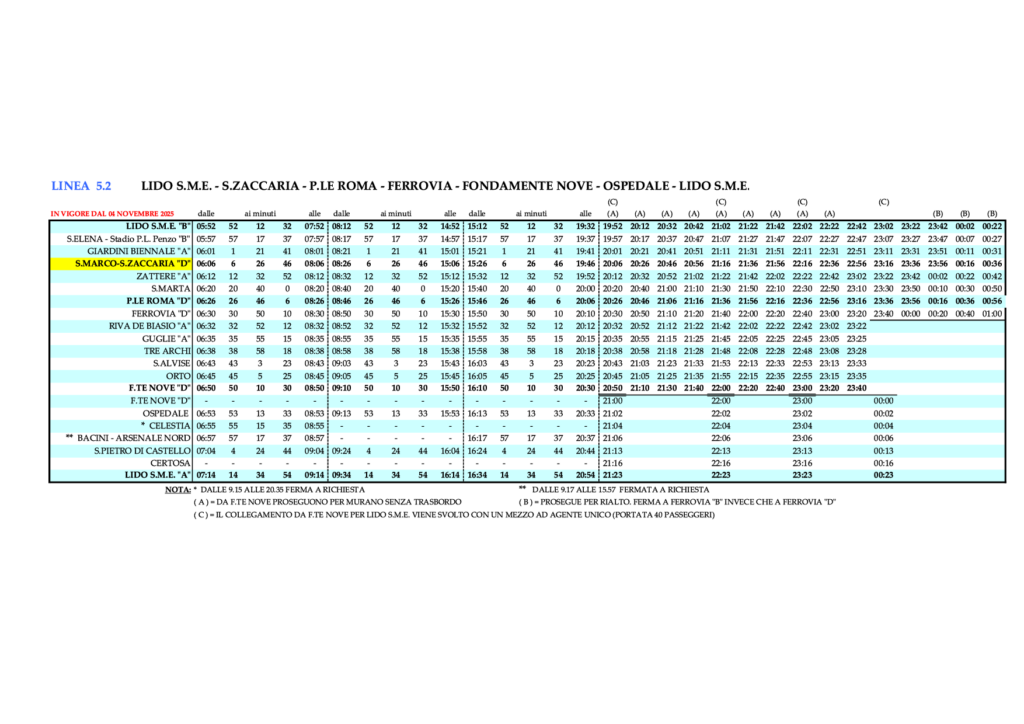 - 3.8 Linie 5.2 – LIDO S.M.E. – S.MARCO/S.ZACCARIA – P.LE ROMA – FERROVIA – FONDAMENTE NOVE – OSPEDALE – LIDO S.M.E.