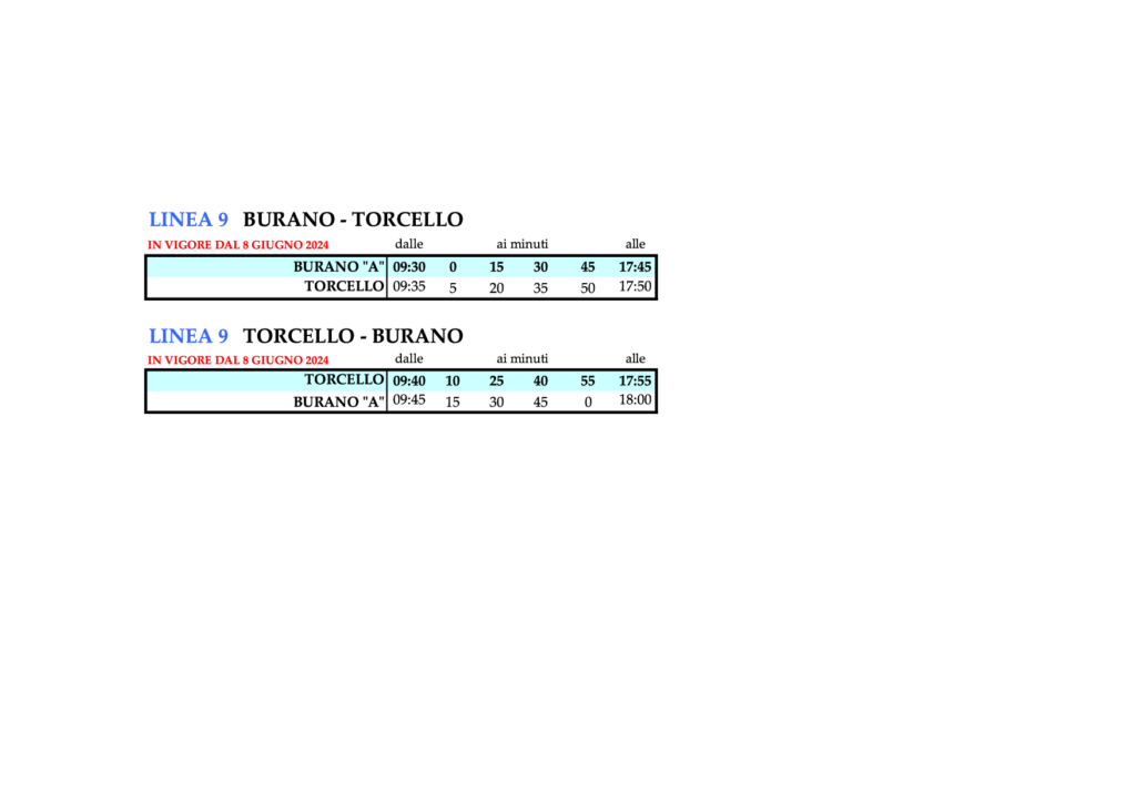 - 3.12 Linie 9 – BURANO – TORCELLO und zurück