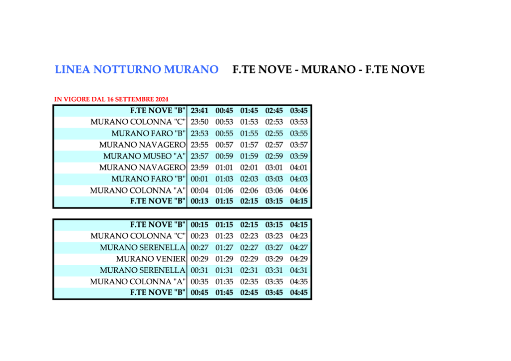 Linie NMU – NOTTURNO MURANO F.TE NOVE – MURANO – F.TE NOVE